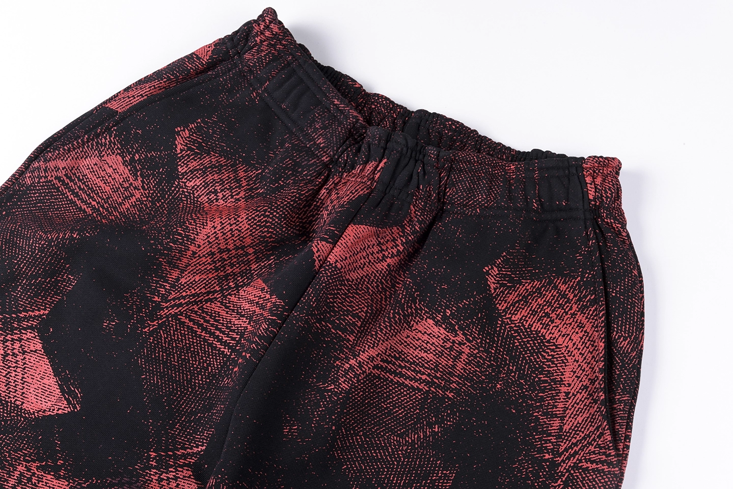 Made from high-quality cotton blend fabric, these sweatpants provide a soft yet structured feel, ensuring both comfort and durability. The design features an all-over red and black abstract pattern, giving the piece a dynamic, textured look that stands out from standard basics.