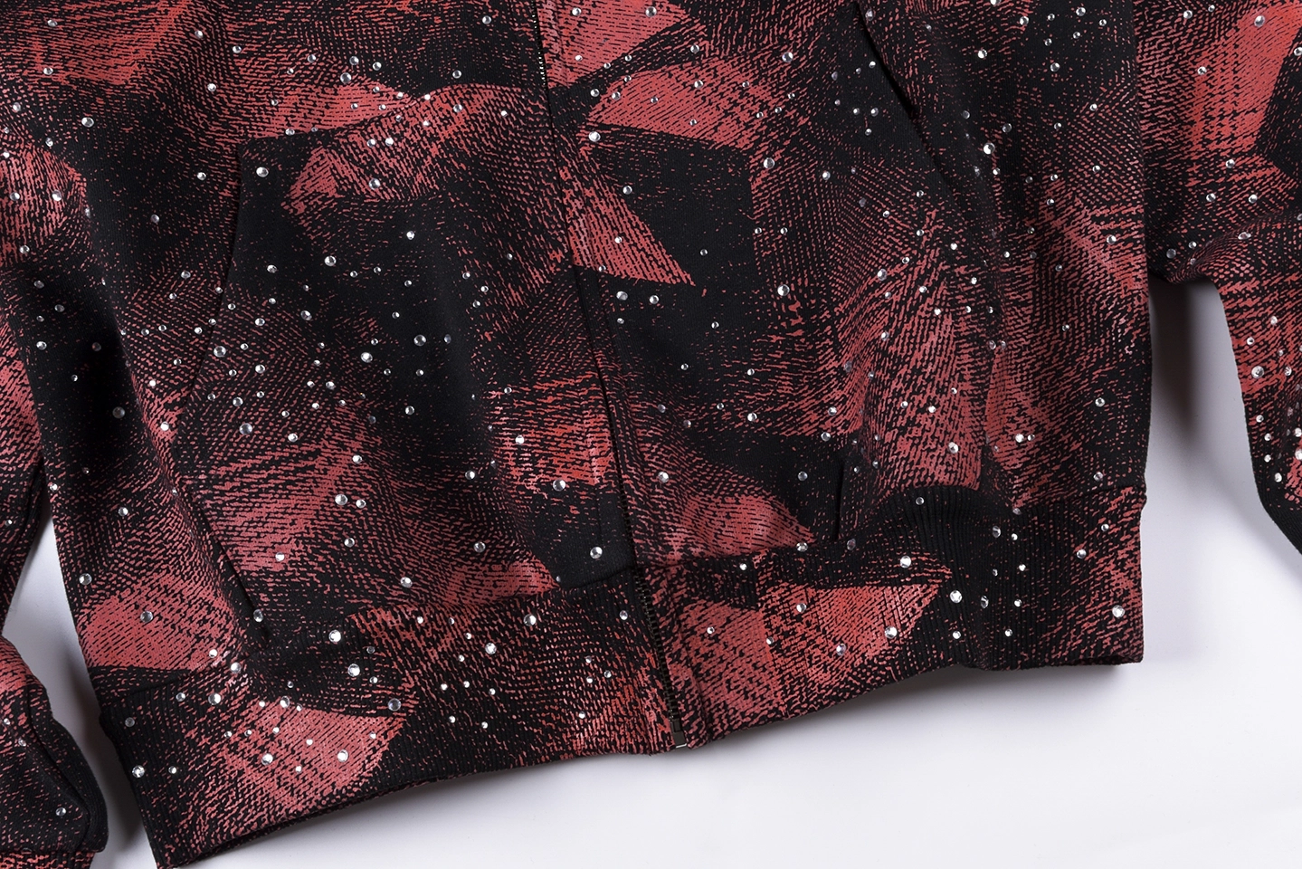 Constructed from premium cotton fleece, this hoodie delivers a soft, heavyweight feel while maintaining structure and durability. The piece features an all-over red and black abstract pattern, layered with splatter-style detailing that adds depth and a gritty, high-impact aesthetic.