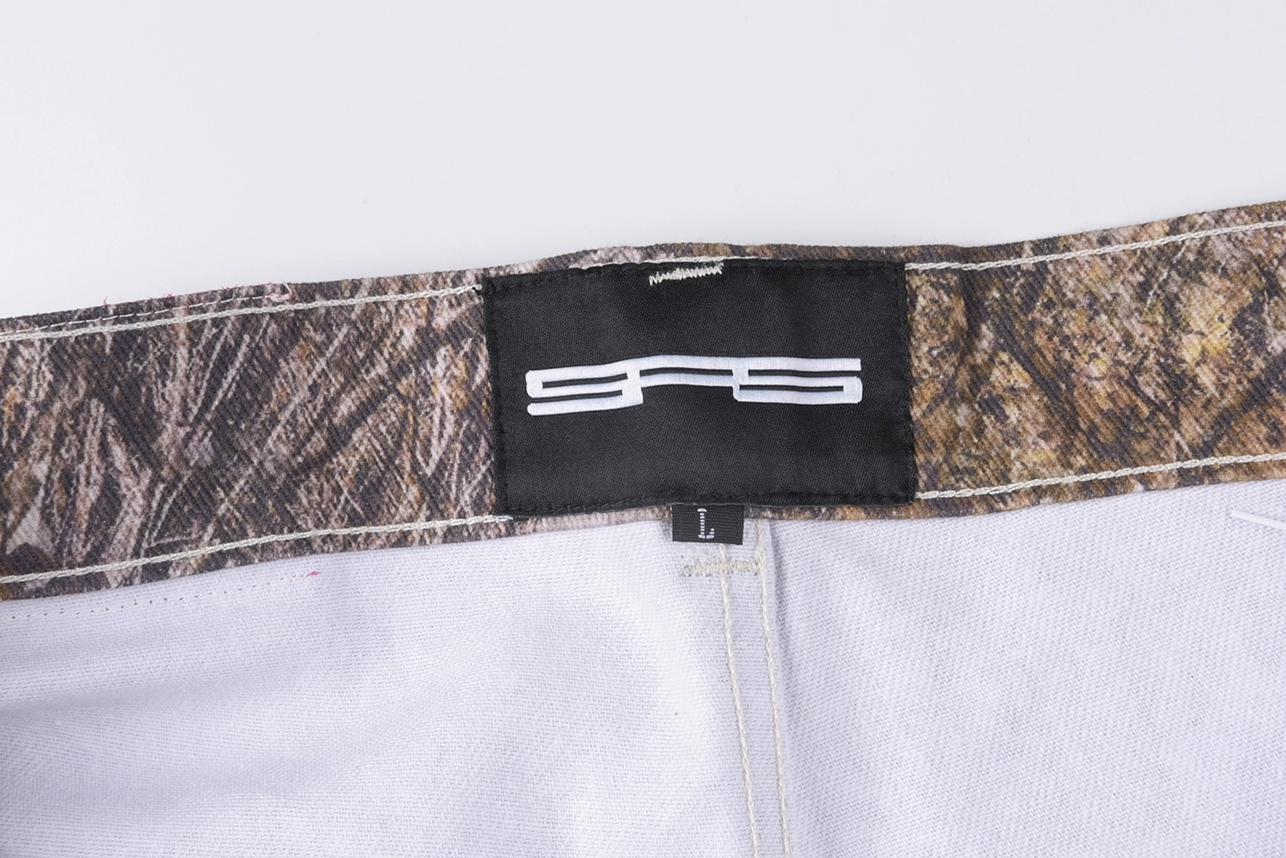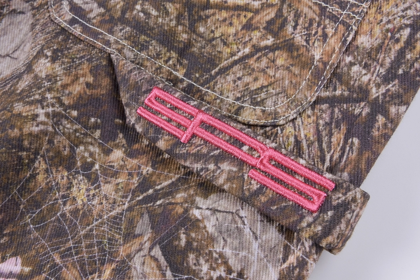 The Sp5der Woodland Blossom Camo Carpenter Pants merge rugged outdoor aesthetics with signature streetwear energy. Built on a detailed woodland bark camouflage base, the design is elevated with subtle blush-pink blossom accents woven throughout the print for unexpected contrast. Functional carpenter-style paneling and utility pocket construction enhance the structured silhouette, while the earthy tones keep the look grounded and versatile. A pink rear patch detail adds a sharp branded finish.
