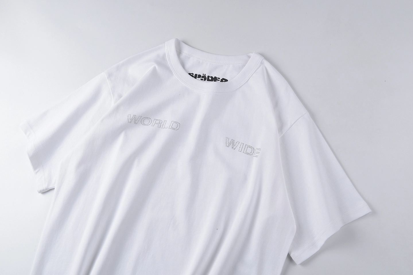 • Tonal “WORLD WIDE” Chest Print: Subtle front branding for a refined look