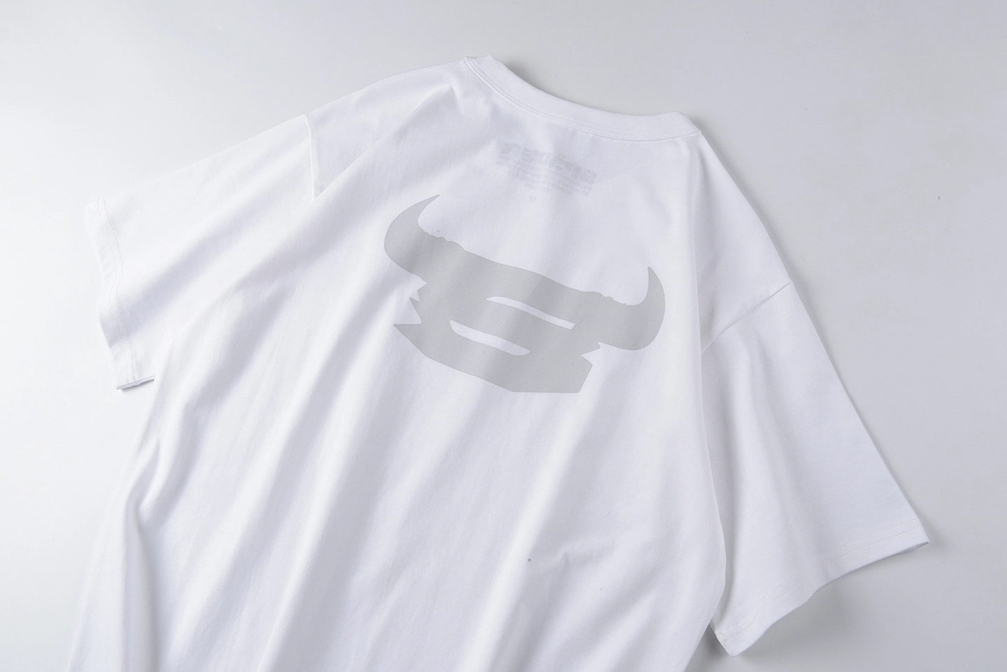 • Matte Grey Back Emblem: Oversized horned logo adds soft visual contrast