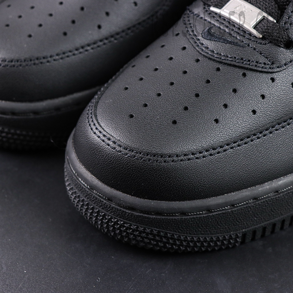 Built on the legendary Air Force 1 Low silhouette, the shoe features a premium full-grain black leather upper, delivering durability, structure, and a sleek all-black aesthetic. The tonal design keeps things understated, allowing the details to speak for themselves.