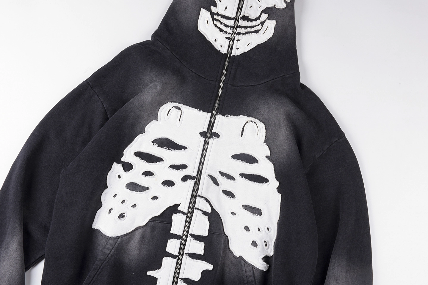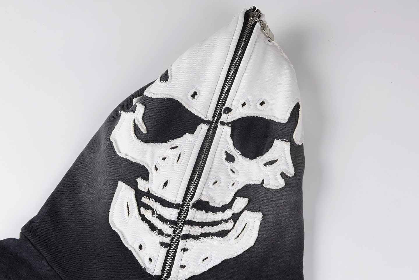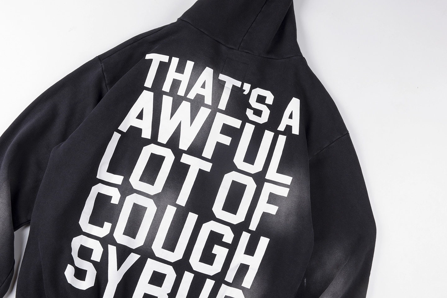 The That’s A Awful Lot of Cough Syrup Skeleton Print Full Zip Hoodie – Black delivers an edgy, rebellious look with its bold full-back typography and full-front skeleton illustration. Designed in a washed black finish with standout white prints, this hoodie features a split-zip skeleton face across the hood and chest, creating a striking visual when fully zipped. The structured ribbed cuffs, hem, and kangaroo pockets offer comfort and utility, while the yellow woven patch adds a signature streetwear touch. A statement piece made for those who walk the line between fashion and attitude.