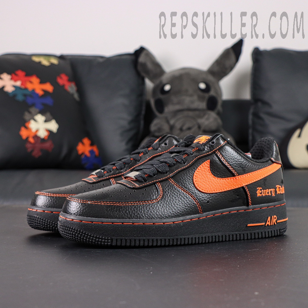 The Vlone x NikeLab Air Force 1 ‘Vlone’ first debuted at ComplexCon 2016, created by VLONE founder A$AP Bari. The design features a premium black leather upper accented by a bold neon orange Swoosh and matching contrast stitching. Signature VLONE branding appears on the heel tab, while the phrase “Every Living Creature Dies Alone” is embroidered across the heels, adding a striking personal touch. Re-released in 2017 at a Harlem pop-up, this collaboration remains one of the most sought-after AF1 drops in streetwear history.