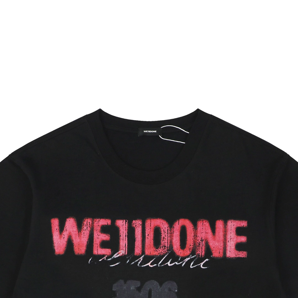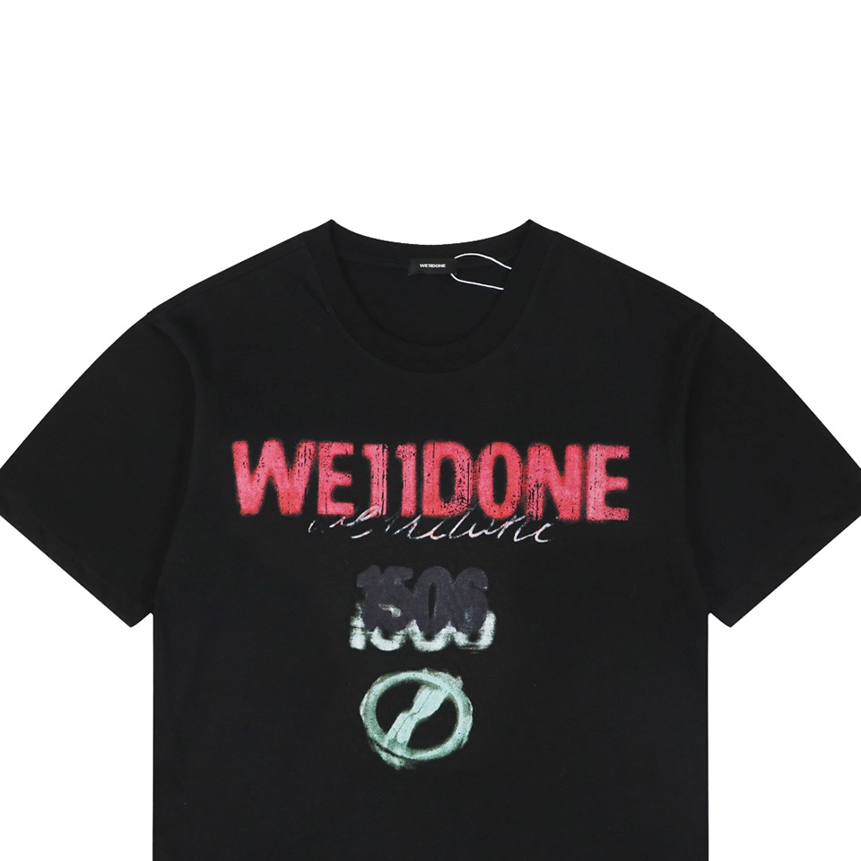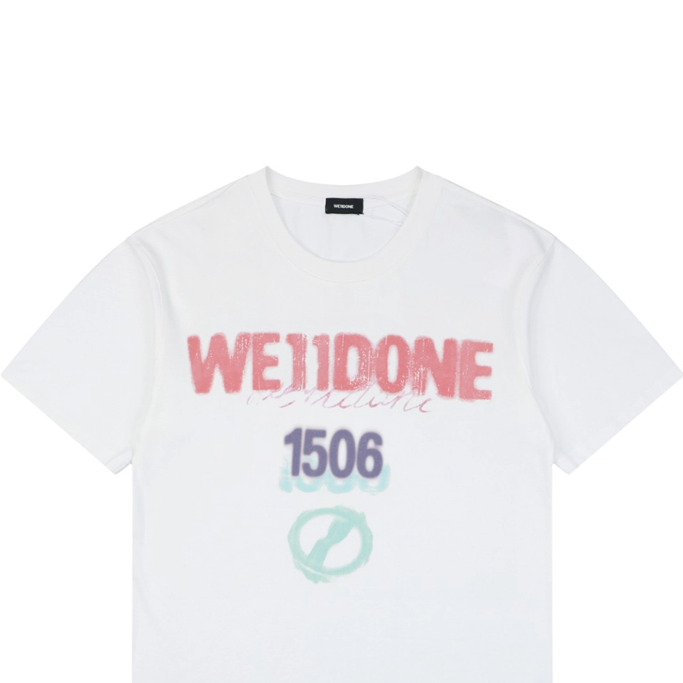 The We11done 1506 Graffiti Logo Print T-Shirt showcases a bold streetwear aesthetic with expressive graphic elements. The front features a layered We11done graffiti-style logo print combined with the “1506” graphic, creating a visually striking design that reflects modern street culture and artistic expression.
