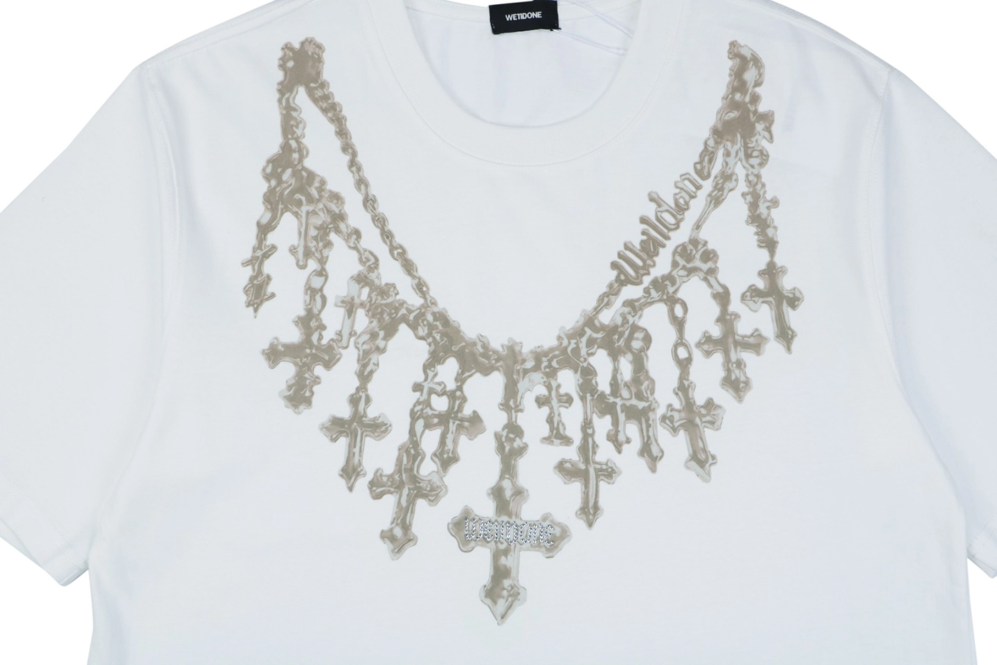 We11done Cross Necklace Graphic T-Shirt (White/Black) We11done Cross Necklace Graphic T-Shirt (White/Black)