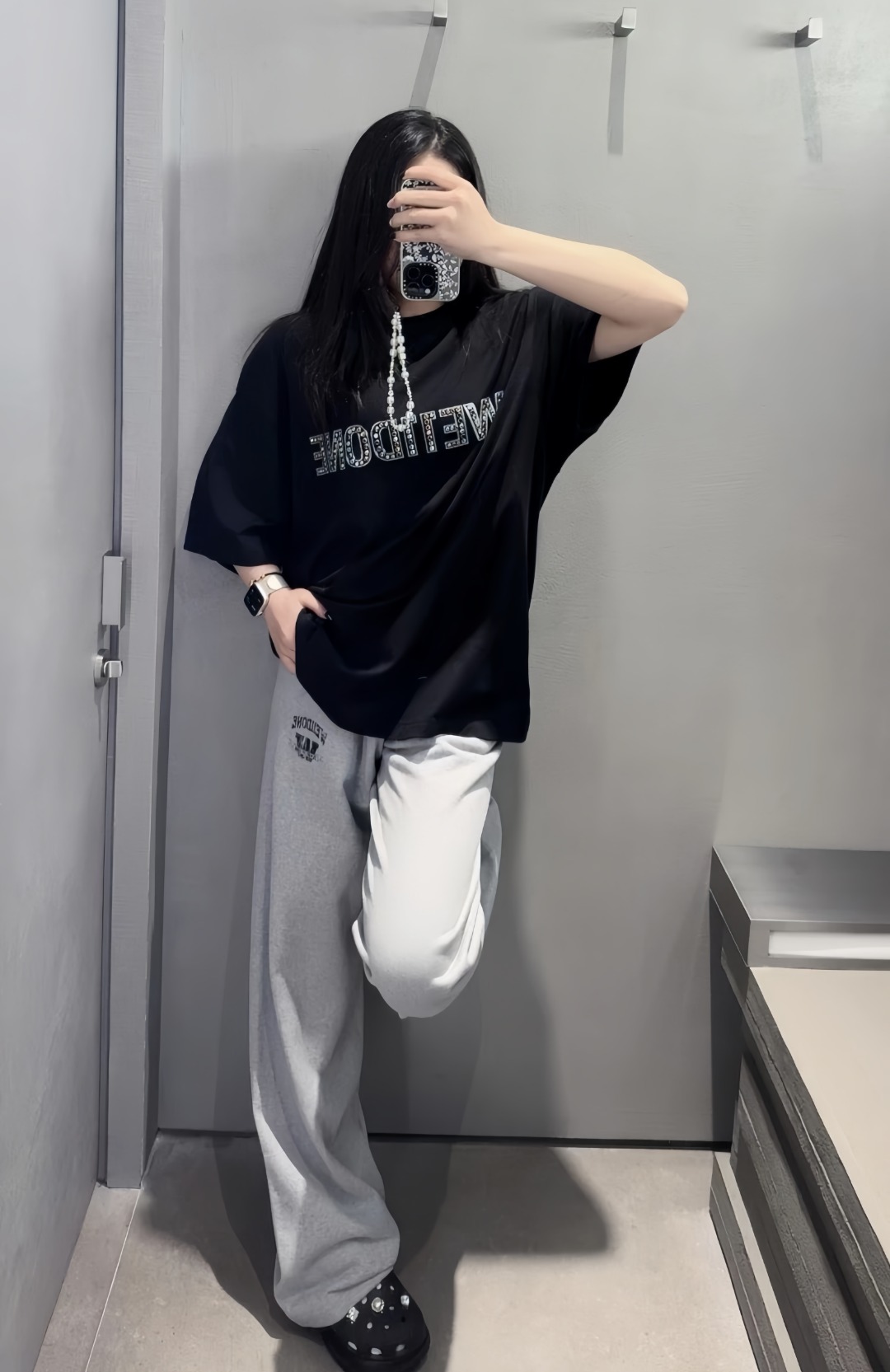 A signature distressed letter print is applied using oval-frame screen printing with high-quality rubberized ink, ensuring crisp edges and long-lasting color retention. Reinforced bar-tack stitching at the pockets, custom drawcords, and full branded trim complete the high-end finish. These unisex sweatpants deliver a relaxed straight fit, ideal for daily wear, streetwear styling, or matching top-and-bottom sets. Perfect for shoppers searching for We11done sweatpants reps, heavy-weight cotton pants, and high-quality streetwear essentials.