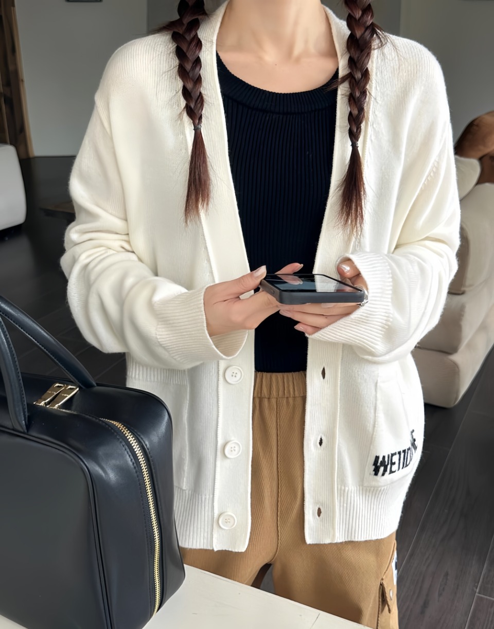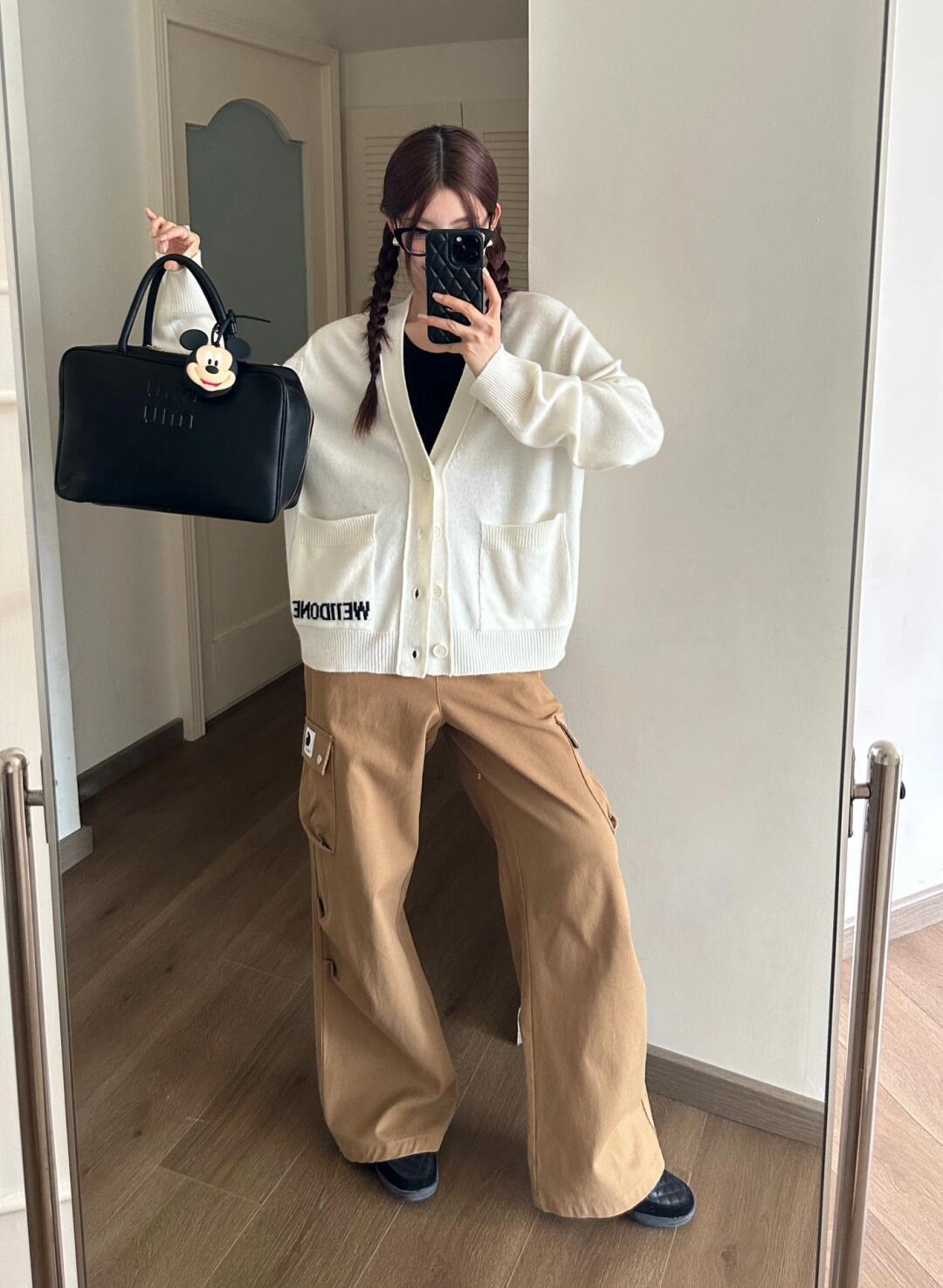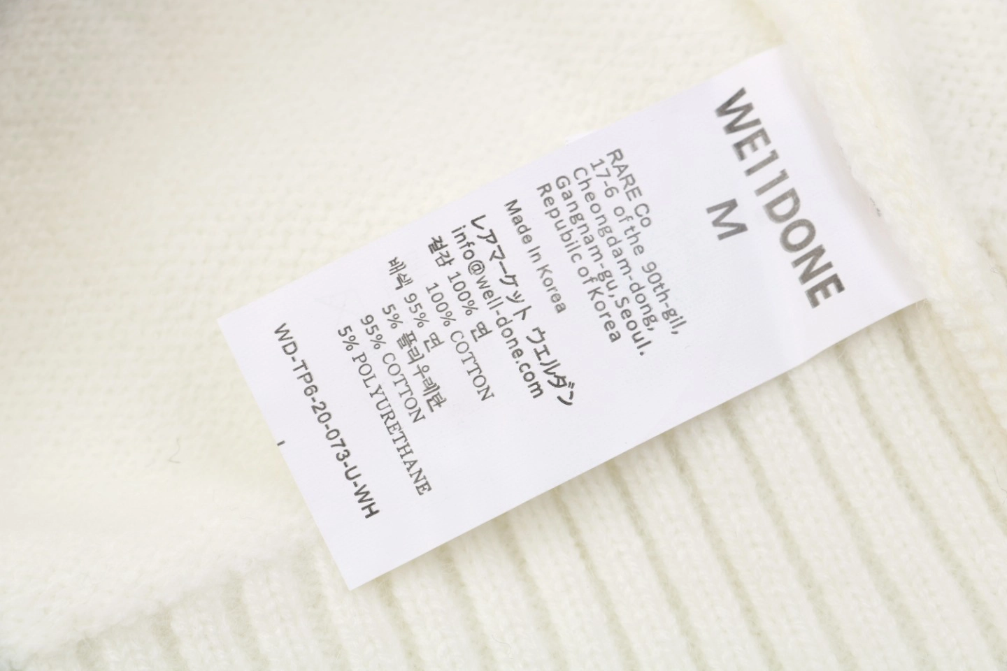 The We11done Pocket Hem “W” Cardigan is crafted from a premium blended yarn that offers a soft, smooth touch with dependable warmth and strong anti-pilling performance. Knitted using an imported seamless flat knitting machine, the cardigan features full rolled edges and requires over 90 minutes of machine time per piece to ensure refined structure and high-end texture. Both the raw panel and finished garment undergo dual washing processes to secure shape retention and enhance comfort. Designed with signature We11done “W” lettering at the hem and functional front pockets, the cardigan delivers subtle detail and modern character. Its relaxed silhouette provides excellent drape and versatility, making it an easy layering piece for the fall and winter seasons.