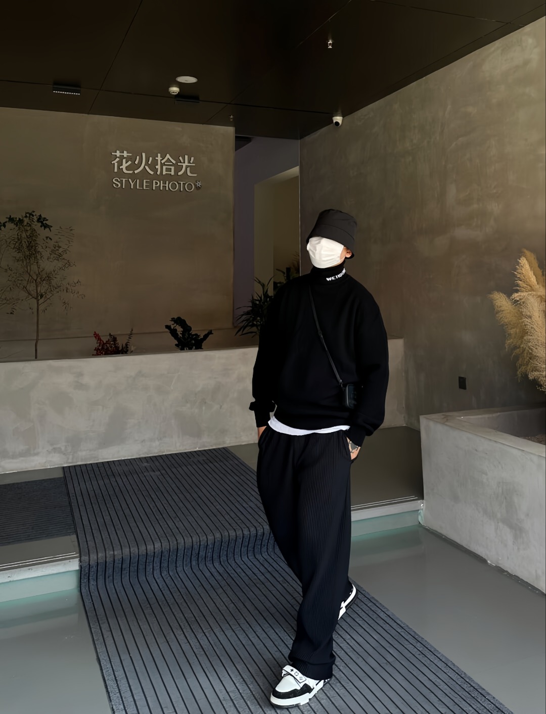 The We11done Small WE Logo High-Neck Knit Sweater features the brand’s signature minimalistic aesthetic, presented in clean monochrome tones with a soft and cozy knit texture.