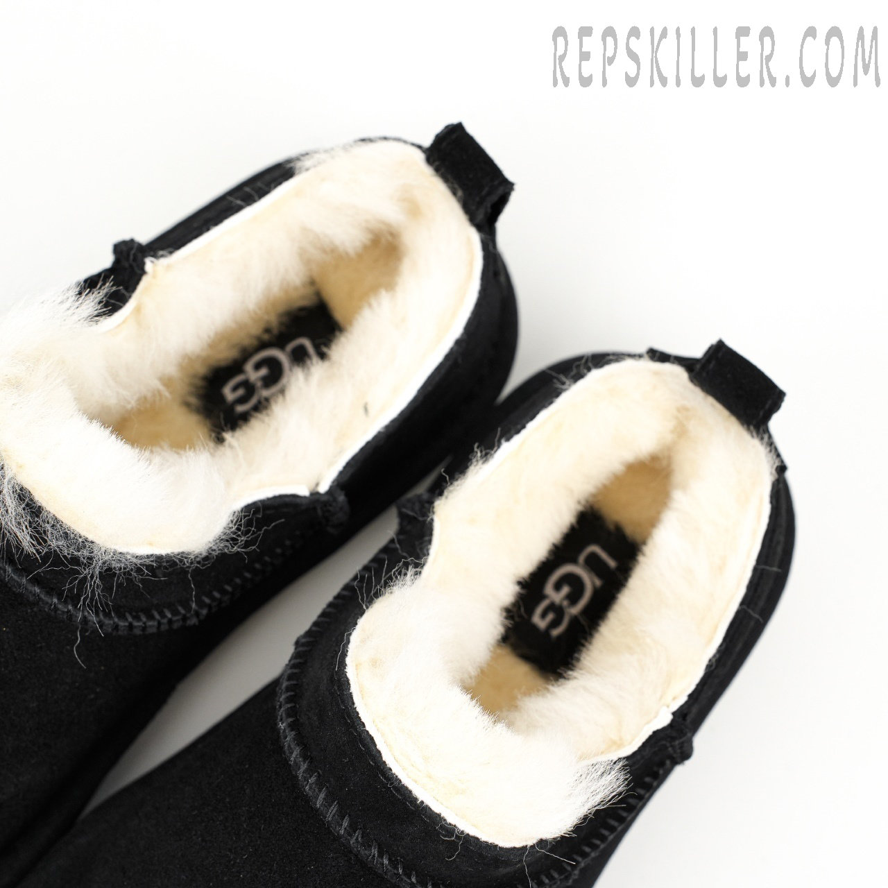 • Woven label with The UGG® Logo on insole, The UGG® Logo embossed leather heel label
