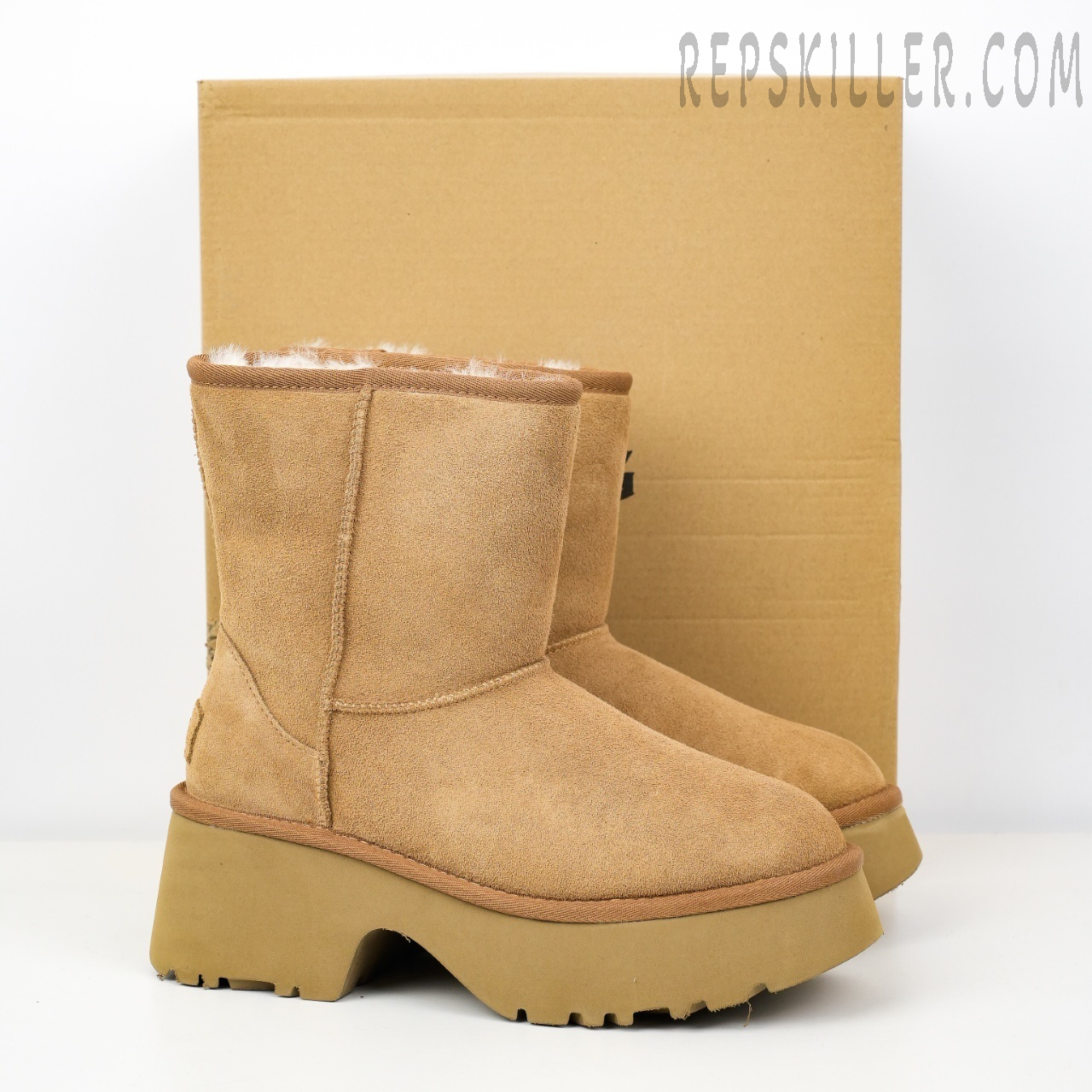The Wmns Classic Short New Heights Boots “Chestnut” combines towering style with cozy comfort. Crafted from premium chestnut-brown suede, its high-rise shaft offers both warmth and structure. Reinforced twin-seam stitching and textile binding enhance durability, while the heat-embossed UGG logo at the heel adds a signature touch. Inside, plush UGGplush upcycled wool lines the interior and foam sockliner for ultimate softness. The updated Sugarcane EVA sole features a 2.75-inch platform and 3-inch heel, delivering height, stability, and year-round versatility.