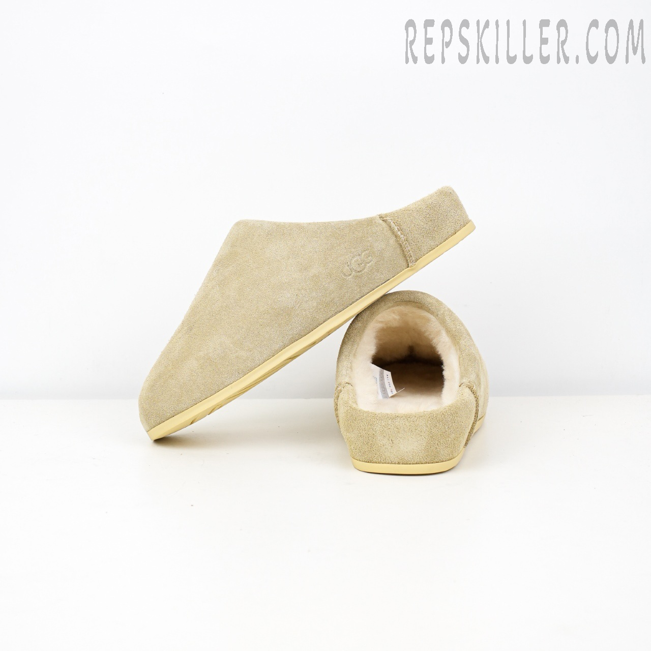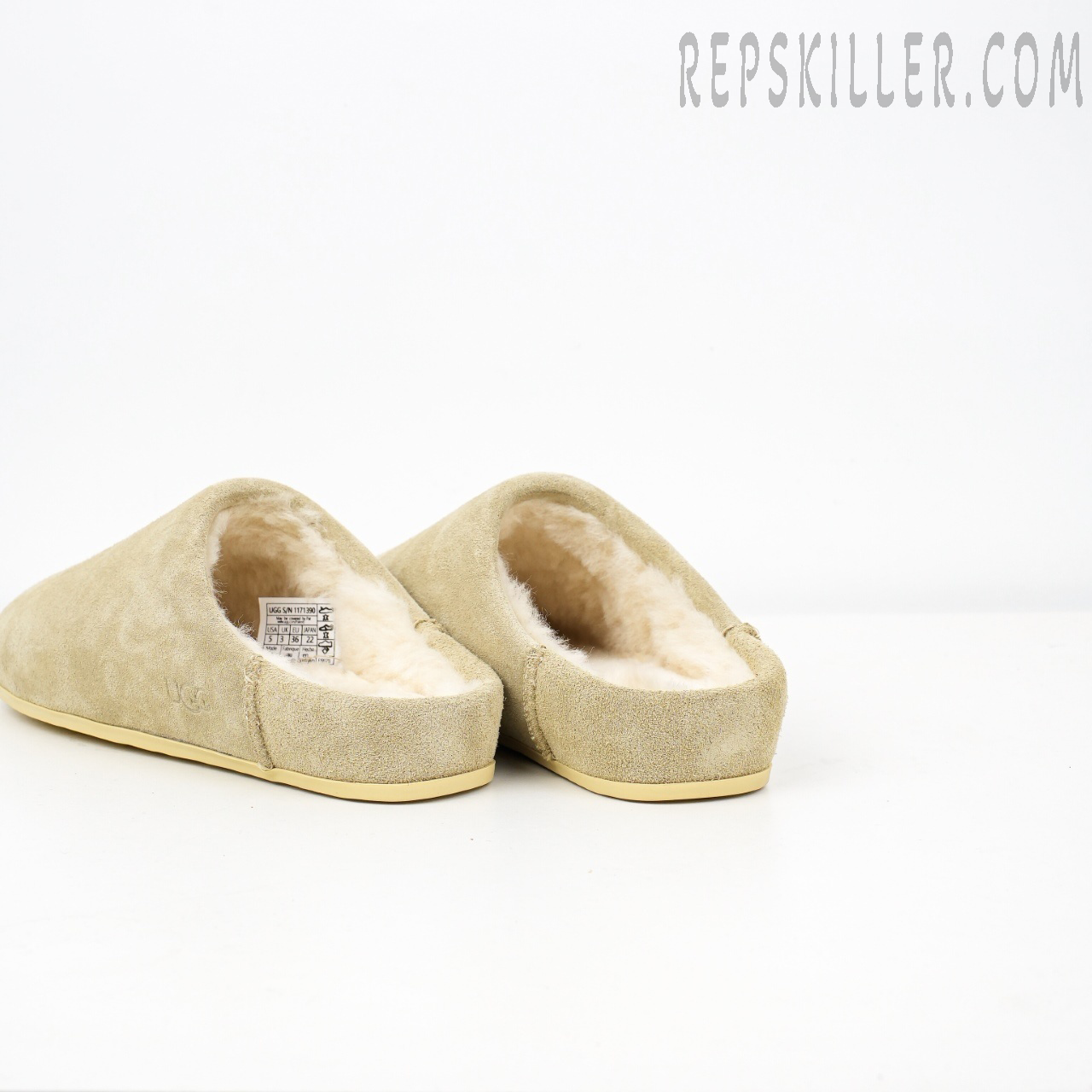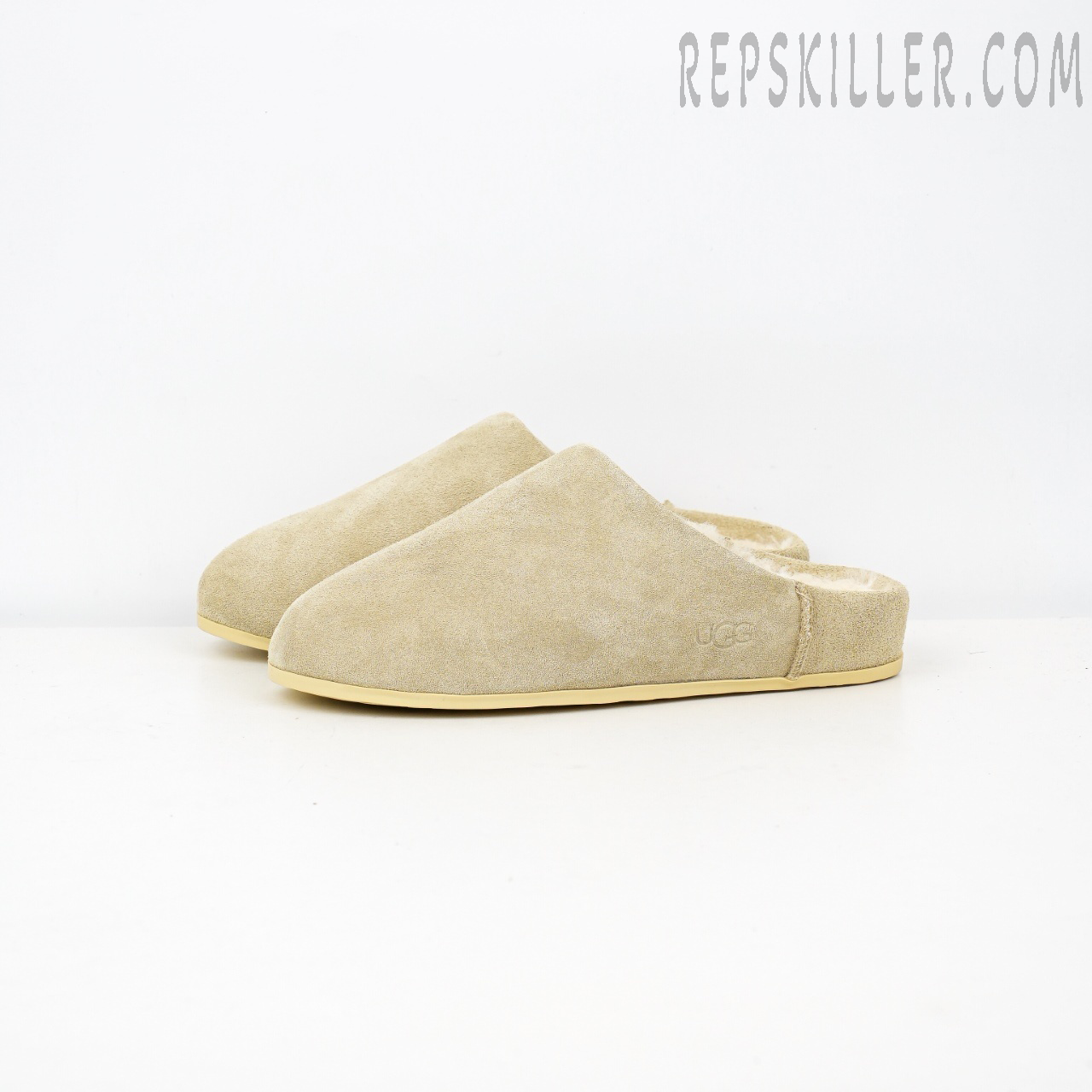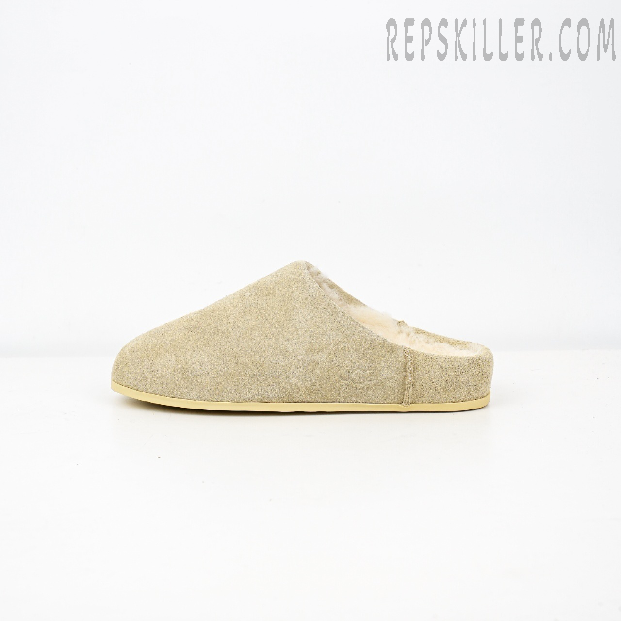 UGG Elea Slip-On Slipper 2025 Fall New Arrival — a celebrity-inspired shallow slip-on with a lightweight closed-toe design. Effortlessly stylish and easy to wear, it features a slim rubber sole for a light step and a relaxed half-back silhouette. Crafted from premium suede with a 10mm wool lining, the insole is embossed with the UGG logo, adding a refined and cozy touch to every outfit.