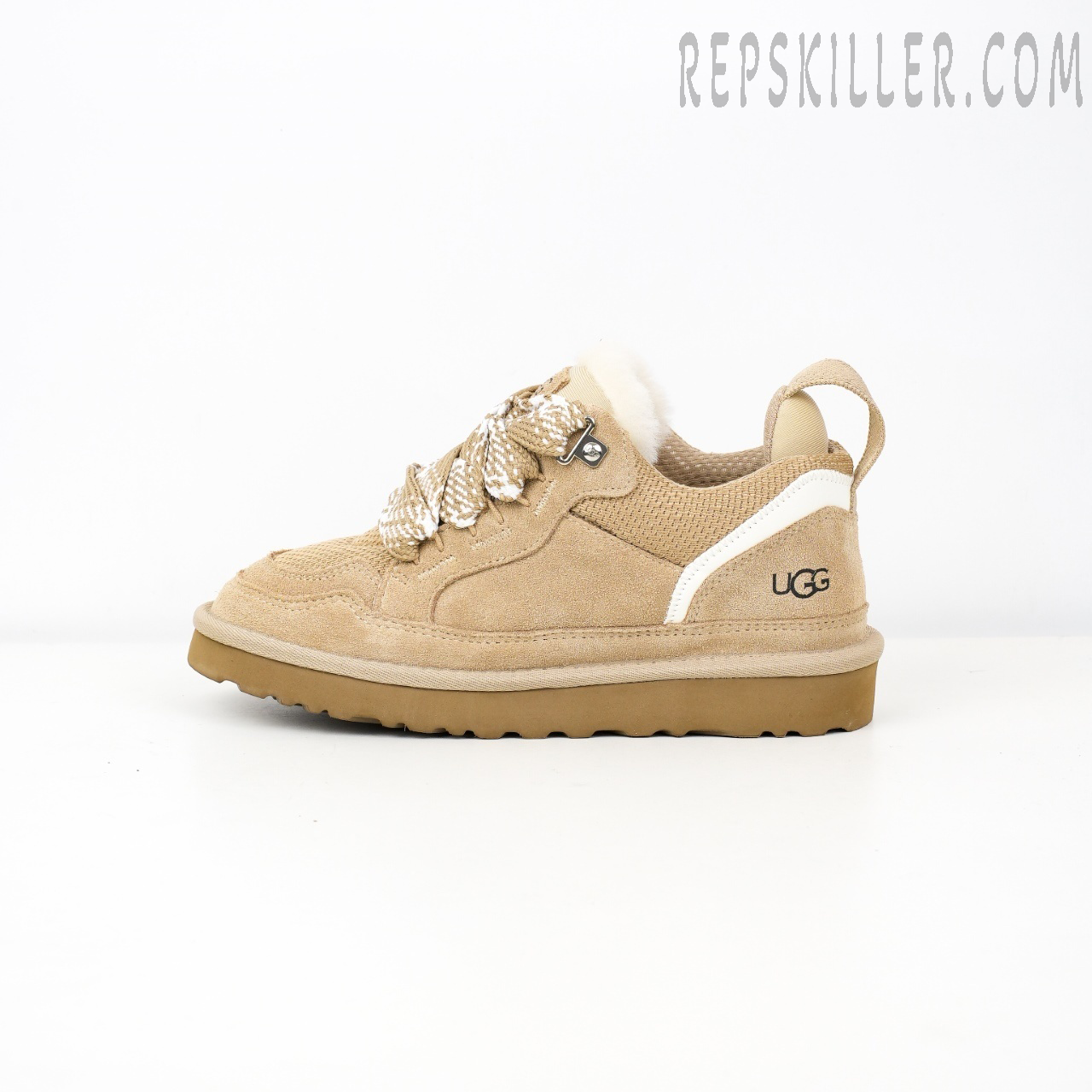 The UGG Lowmel Sneakers channel laid-back West Coast energy — a perfect blend of nostalgia and modern comfort. Featuring chunky round laces meant to be worn open for a relaxed vibe, this pair is crafted with soft suede and textile materials for a classic feel. A breathable mesh vamp enhances warm-weather comfort, while the molded footbed and sugarcane EVA outsole provide lightweight cushioning and all-day ease.
