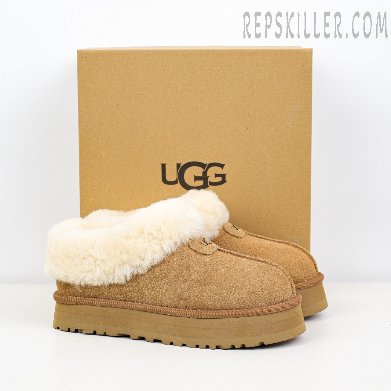 The UGG Tazzette Slippers are crafted from a supple suede upper and lined with plush shearling for a warm, cozy feel. A thick, durable rubber sole ensures excellent traction and comfort, making them perfect for both indoor relaxation and outdoor wear.