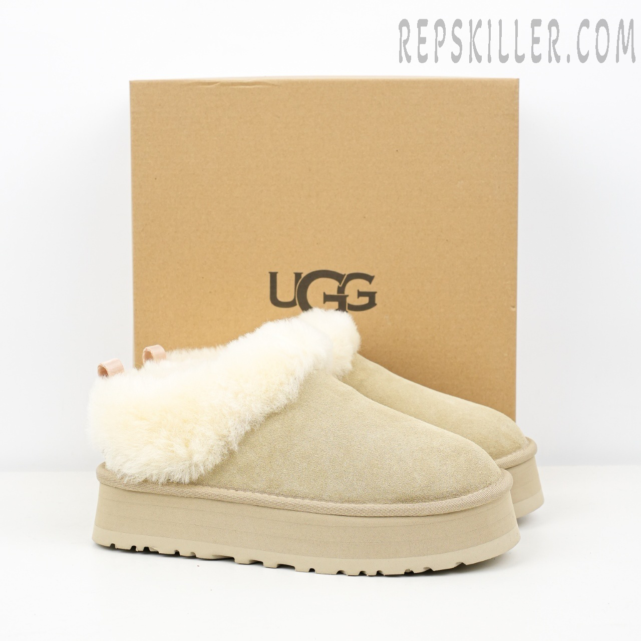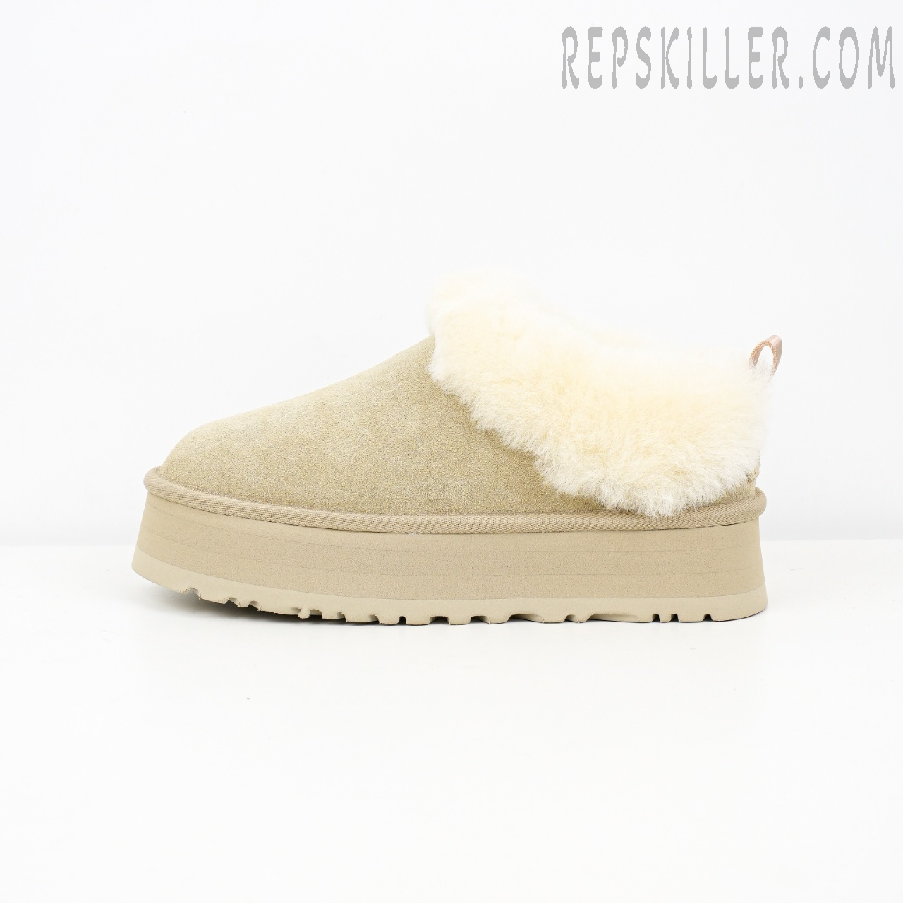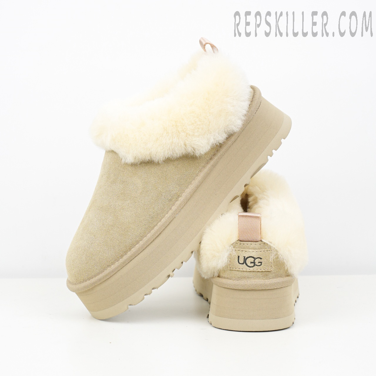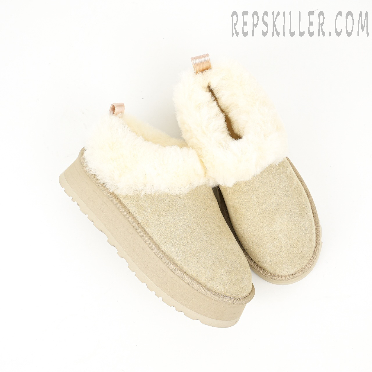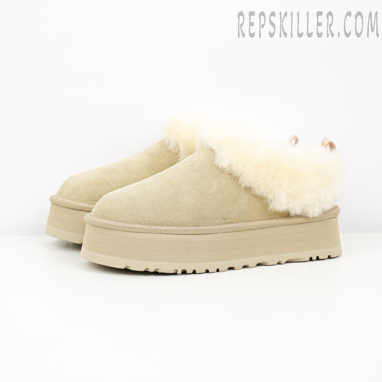Love the Tazz but craving even more UGG® coziness? Meet the Tazzelle. This ultra-plush indoor-outdoor slipper is crafted from genuine suede with a soft sheepskin lining that extends onto the fluffy cuff for full warmth and comfort. Set on a lightweight 1.75” platform made from springy sugarcane EVA, it offers a cushioned lift you’ll love — perfect to wear with or without socks.
