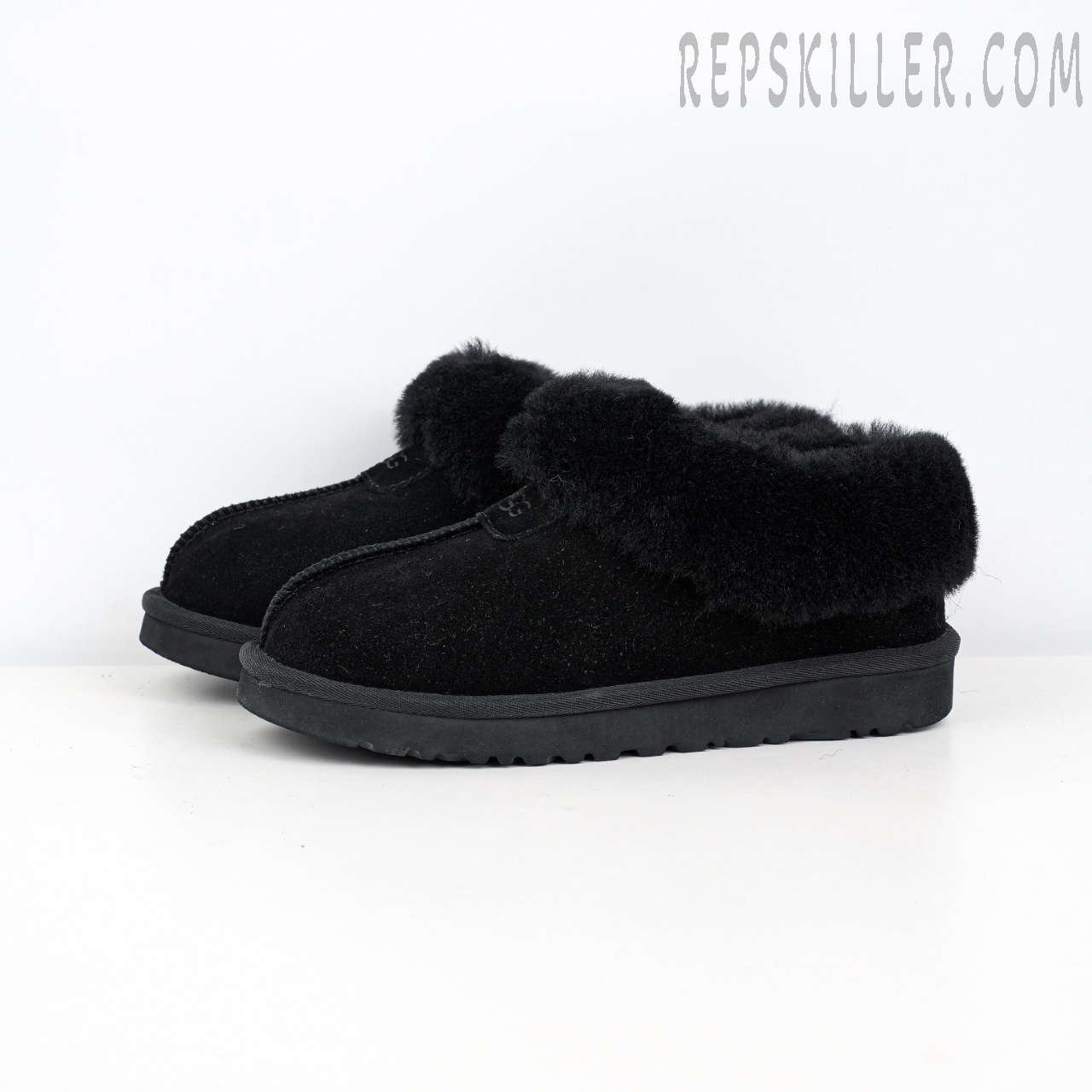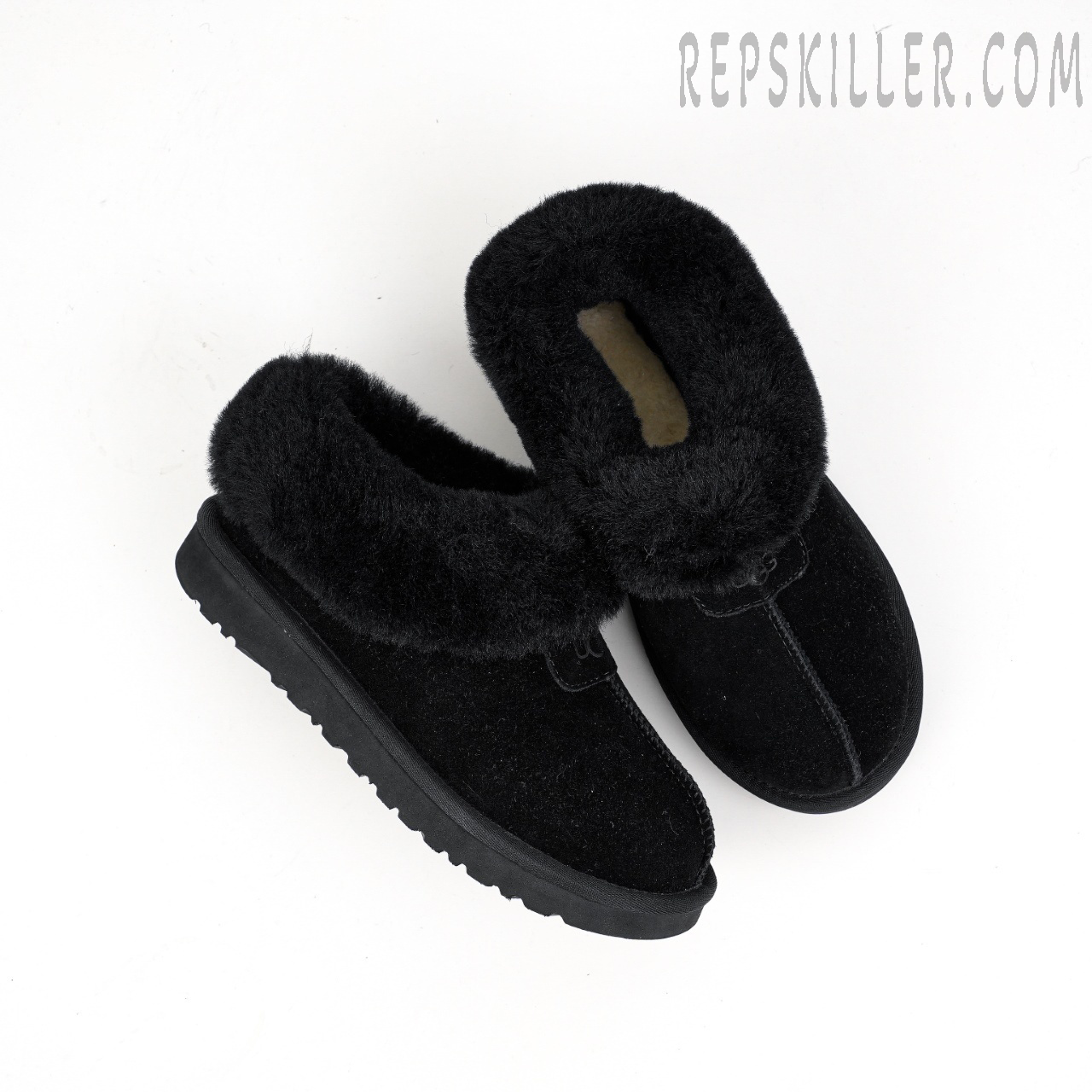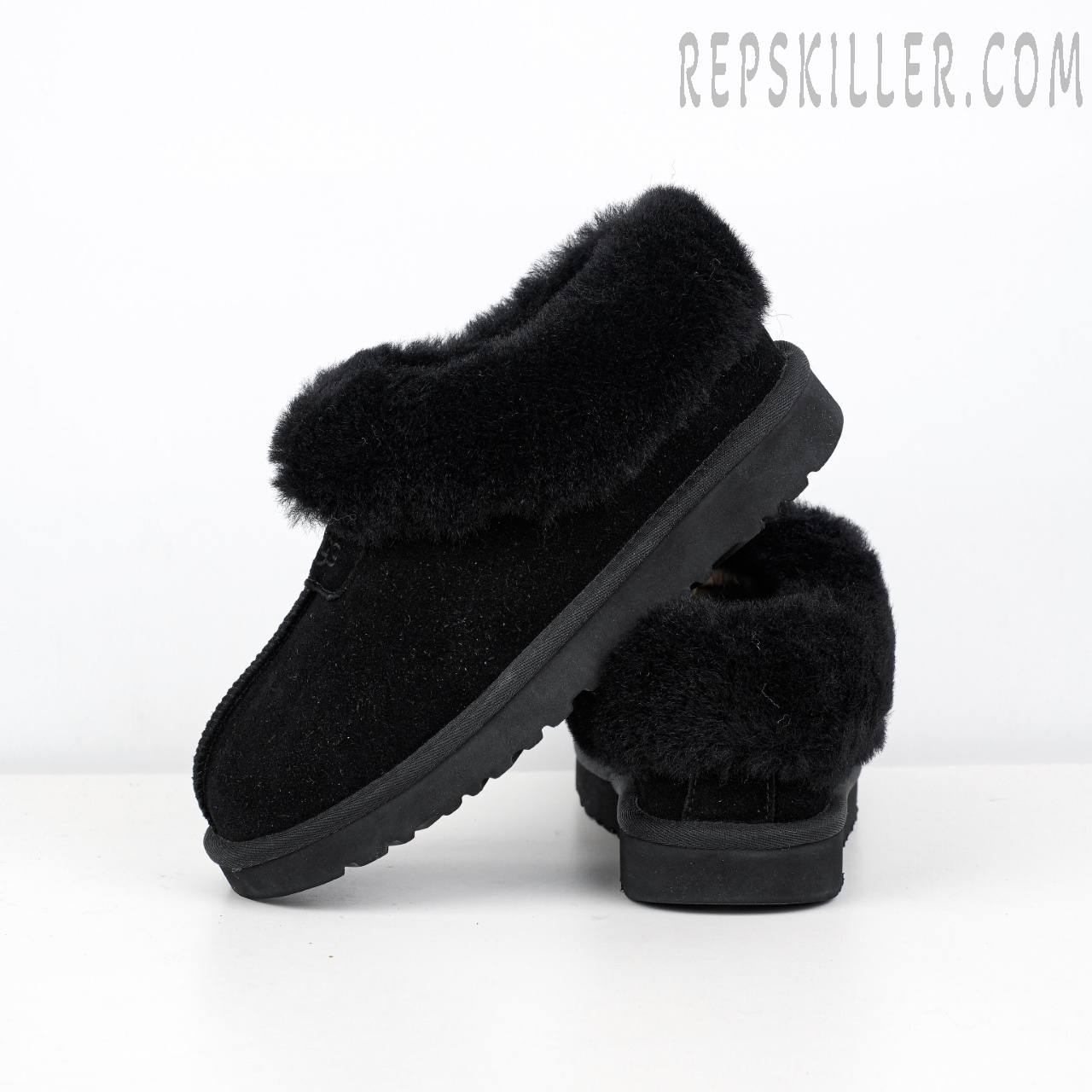 The UGG Tazzette Slippers are crafted from a supple suede upper and lined with plush shearling for a warm, cozy feel. A thick, durable rubber sole ensures excellent traction and comfort, making them perfect for both indoor relaxation and outdoor wear.