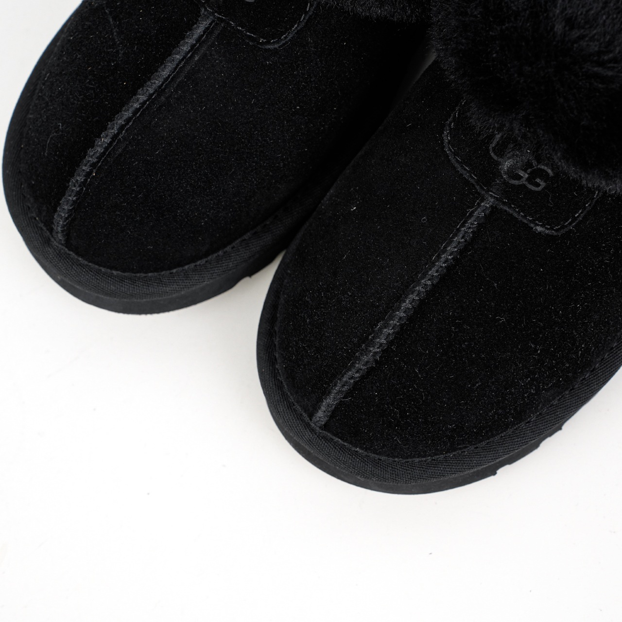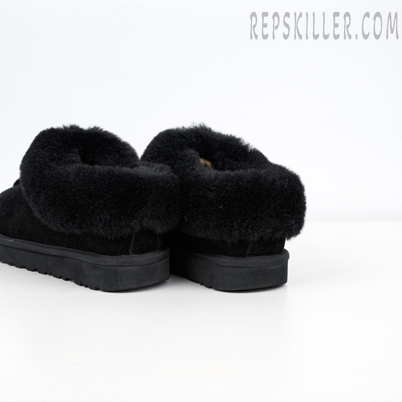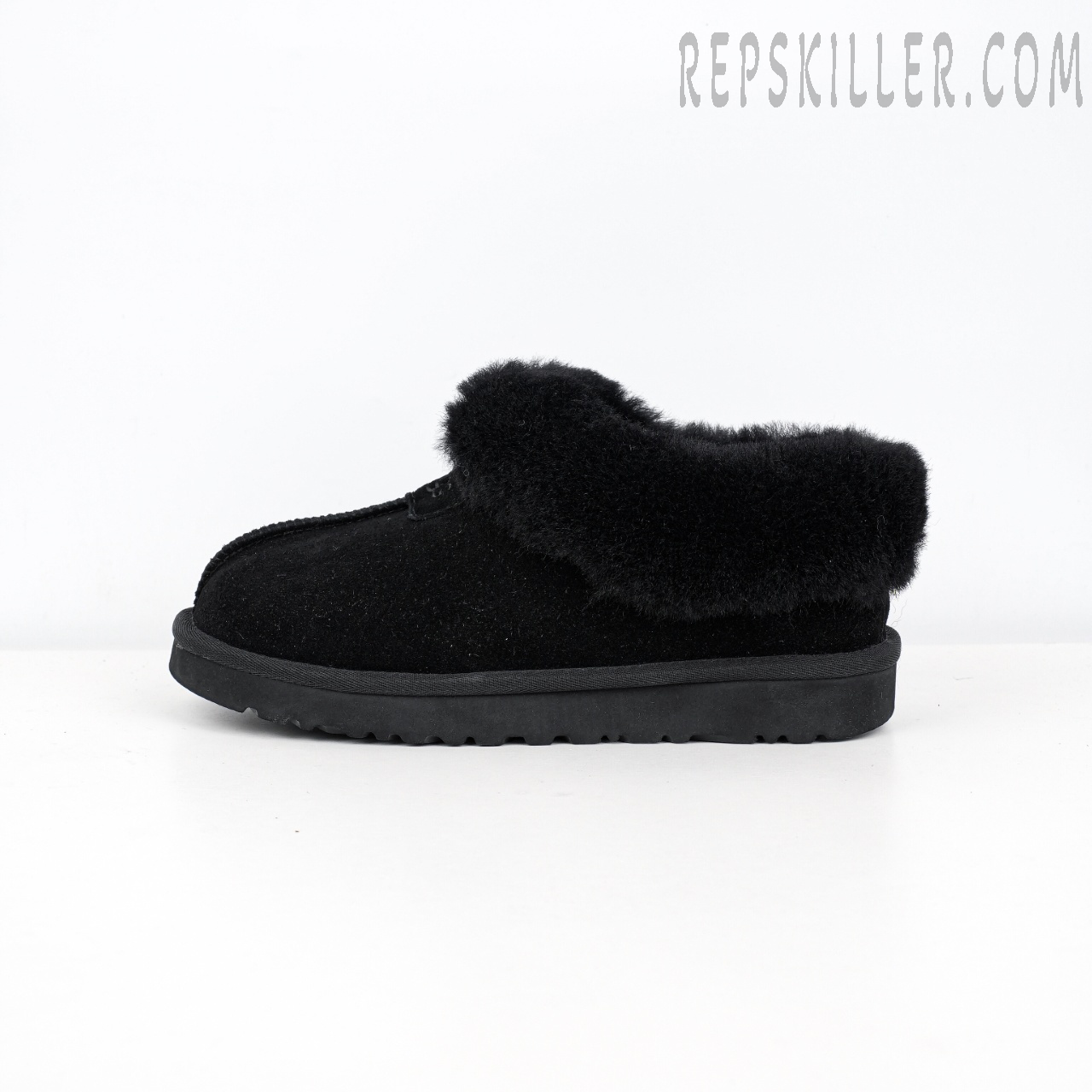 The UGG Tazzette Slippers are crafted from a supple suede upper and lined with plush shearling for a warm, cozy feel. A thick, durable rubber sole ensures excellent traction and comfort, making them perfect for both indoor relaxation and outdoor wear.