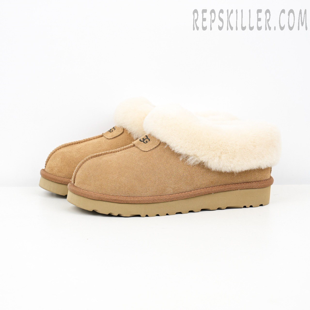 The UGG Tazzette Slippers are crafted from a supple suede upper and lined with plush shearling for a warm, cozy feel. A thick, durable rubber sole ensures excellent traction and comfort, making them perfect for both indoor relaxation and outdoor wear.