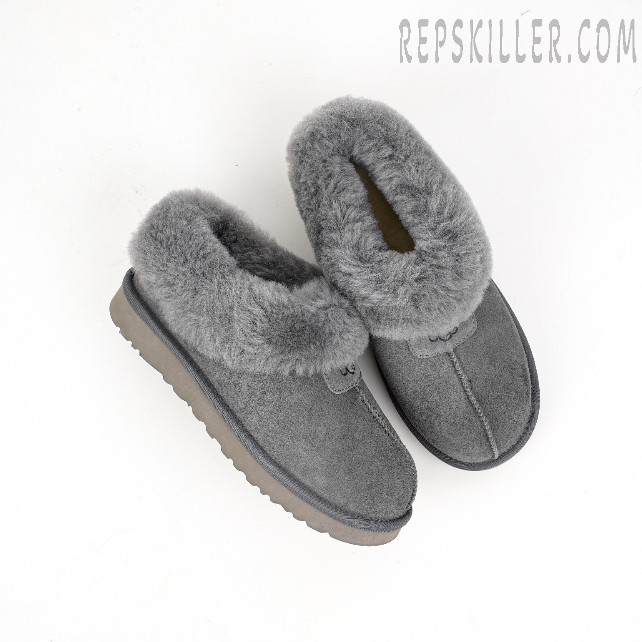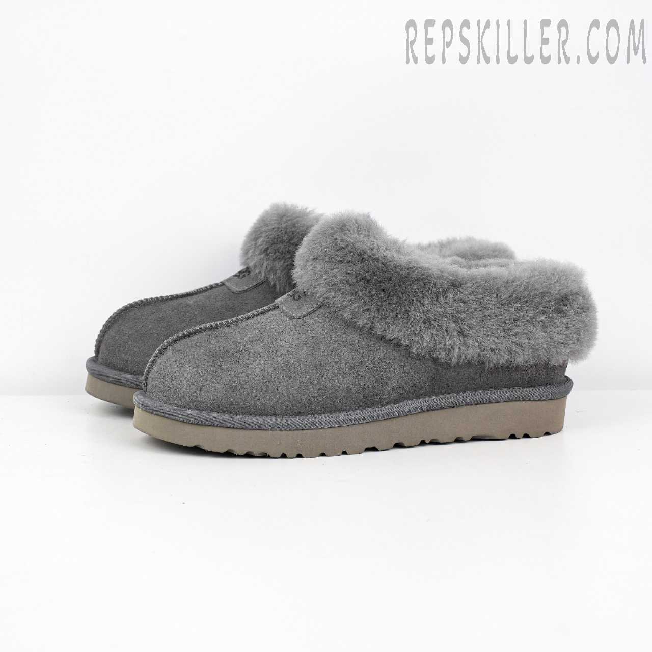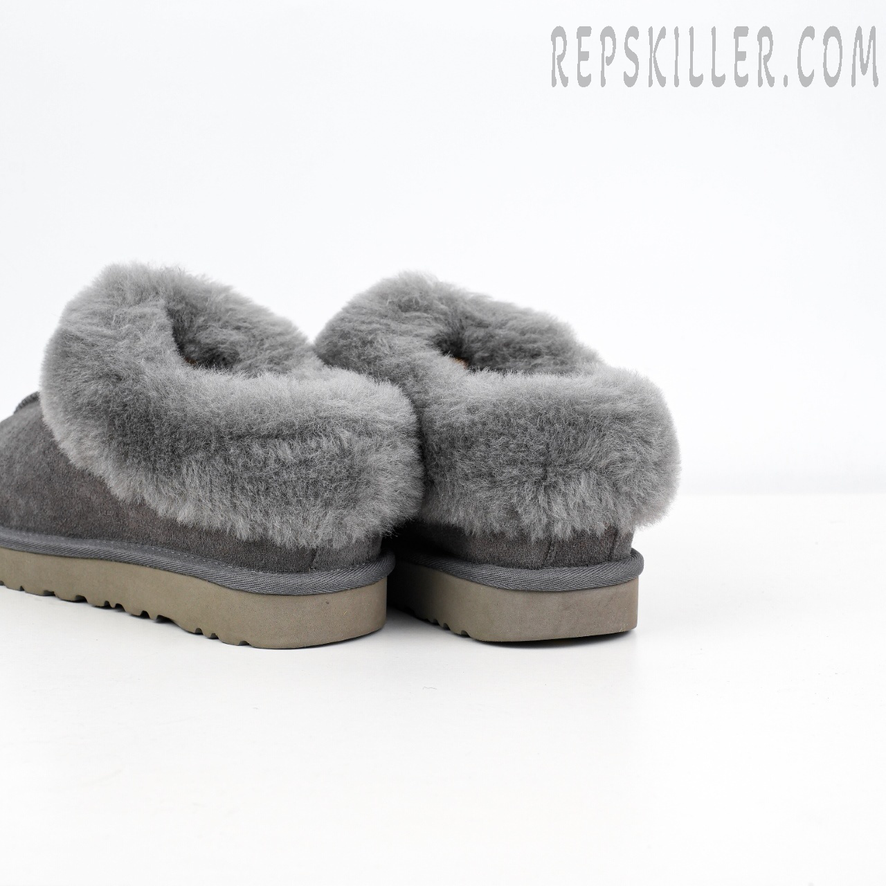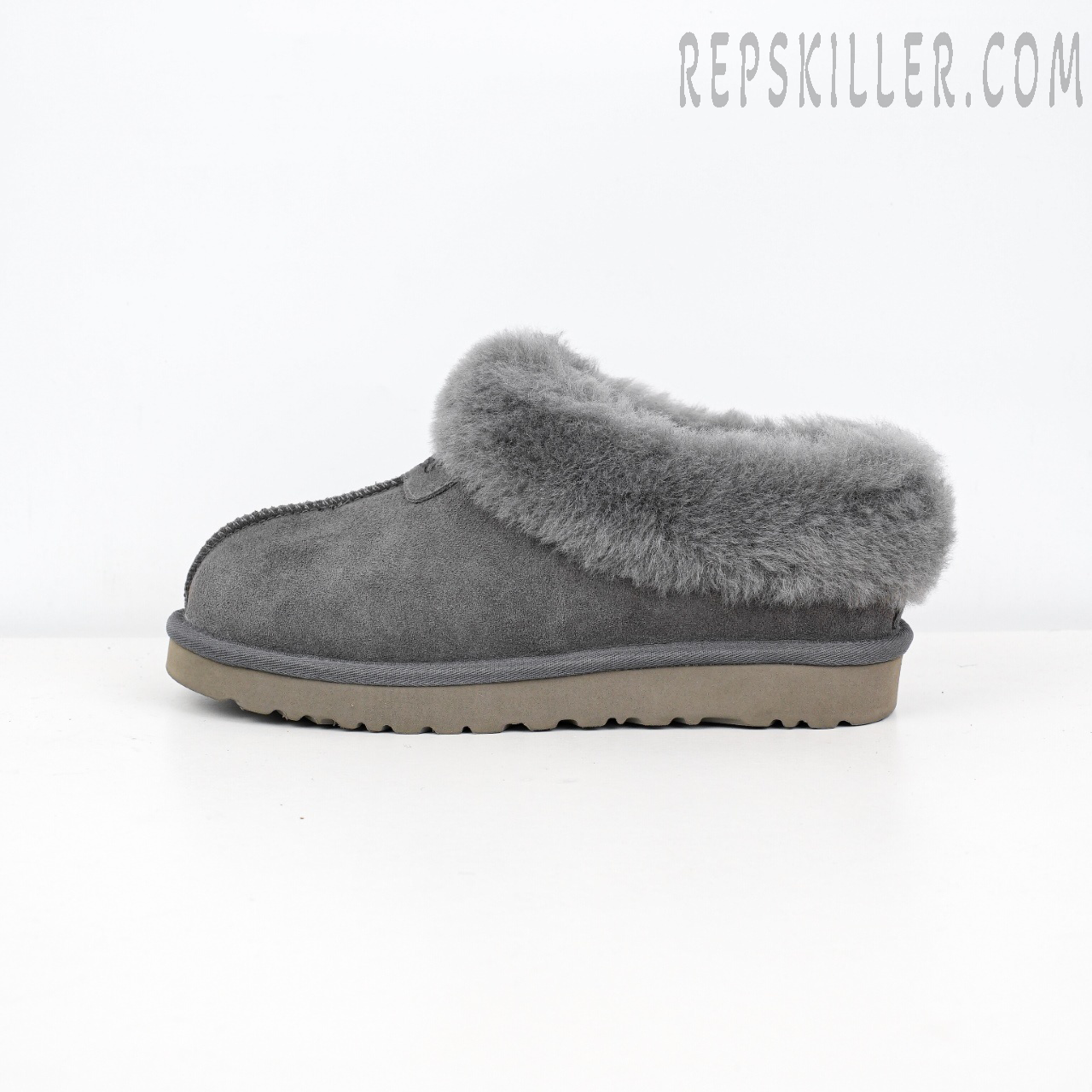 The UGG Tazzette Slippers are crafted from a supple suede upper and lined with plush shearling for a warm, cozy feel. A thick, durable rubber sole ensures excellent traction and comfort, making them perfect for both indoor relaxation and outdoor wear.