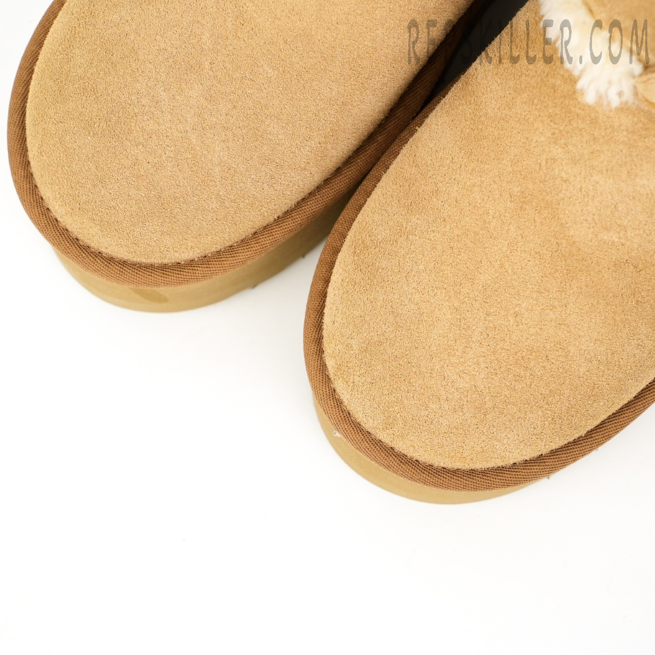 The UGG Wmns Ultra Mini Belted Roller Boots add an edgy twist to the classic Ultra Mini. A wide strap with a functional metal buckle crosses the soft curly upper for a bold, punk-inspired touch. The 2” lightweight platform enhances height and style, while the cozy UGGplush™ upcycled wool blend lining keeps you warm. Finished with a SugarSole™ outsole made from renewable sugarcane, this boot balances softness and attitude. Pair it with distressed jeans or shorts for a leg-lengthening, fashion-forward look.
