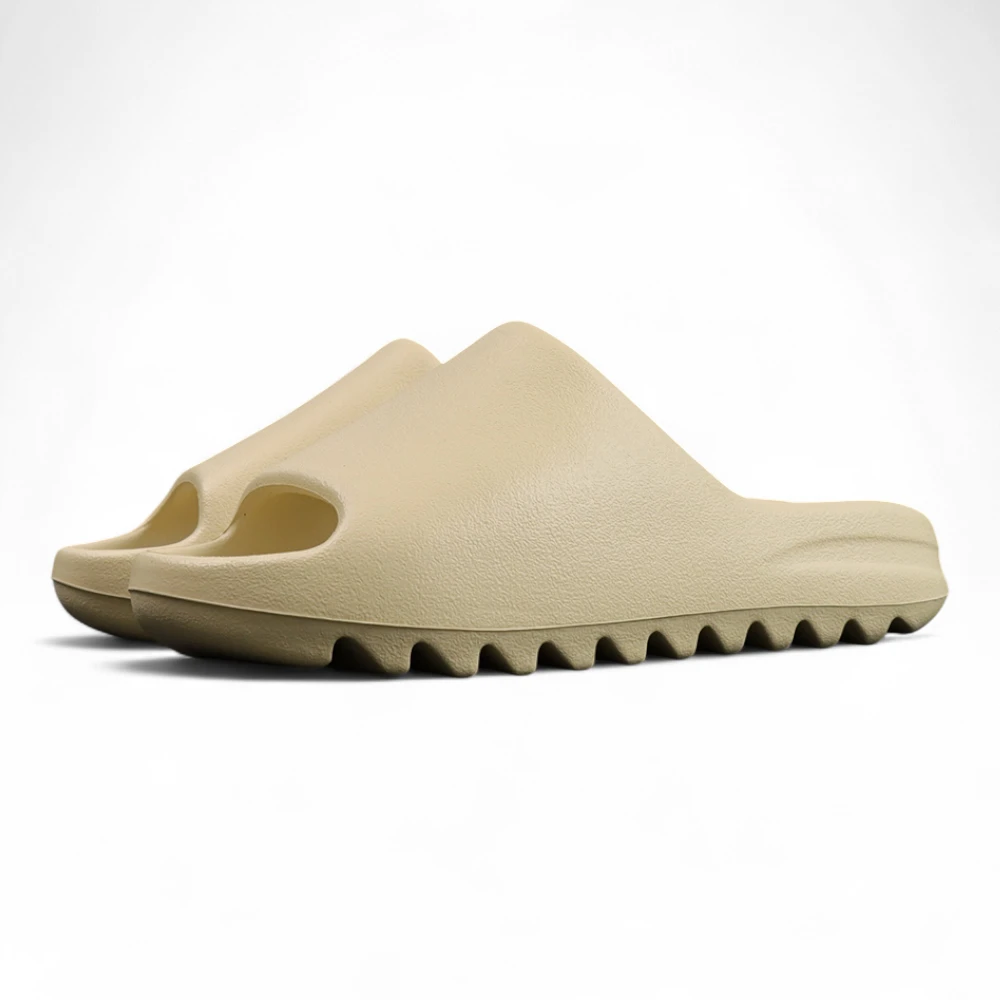 The Yeezy Slides ‘Bone’ 2022 revives the timeless neutral sandal with a refreshed finish. Featuring a soft ivory tone throughout its injected EVA construction, the one-piece design delivers ultra-light durability and natural step-in comfort. Minimalist in both aesthetic and branding, the only logo detail comes from the debossed adidas mark at the footbed. A rugged outsole with horizontal ridges ensures stability and grip, making it a functional slip-on for both indoor and casual outdoor use.