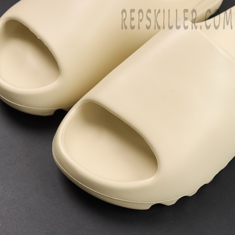The Yeezy Slides ‘Bone’ offer a minimalist silhouette dressed in a subtle beige hue, reflecting the stripped-down elegance of Kanye West’s design ethos. Engineered from injected EVA foam, these slides provide a lightweight yet durable build with soft step-in comfort. The footbed is shaped for ergonomic support, while a ridged outsole with deep horizontal grooves enhances traction on a variety of surfaces. Adidas’ branding is discreetly debossed on the heel, staying true to the understated design.
