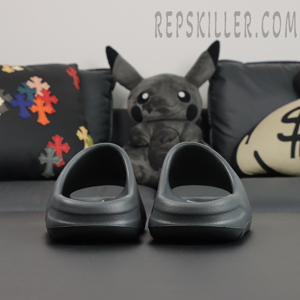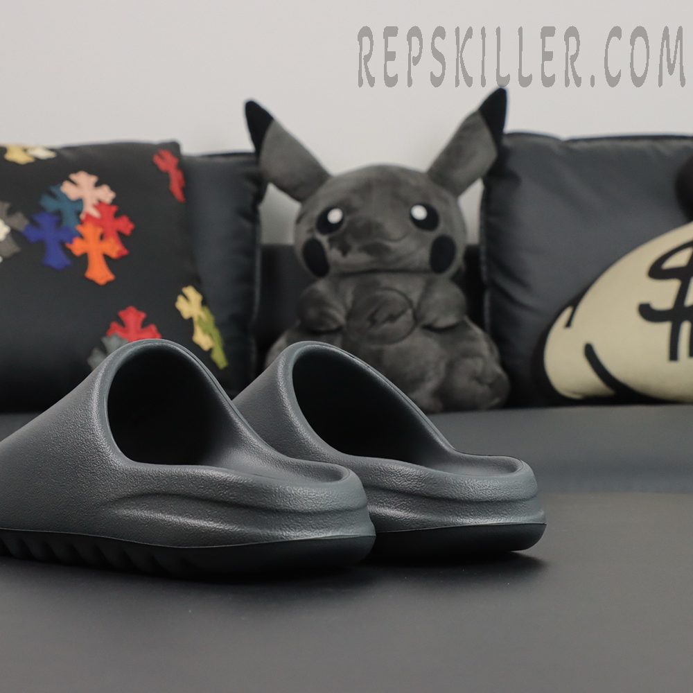 The Yeezy Slides ‘Slate Grey’ delivers a subdued, versatile look through its medium grey EVA foam construction. Designed for everyday comfort, the one-piece build includes a seamless wide-strap upper that hugs the foot naturally. A cushioned footbed with debossed adidas branding offers a plush step-in experience. Deep horizontal grooves underfoot enhance grip and shock absorption, making this futuristic sandal ideal for both indoor lounging and outdoor wear.